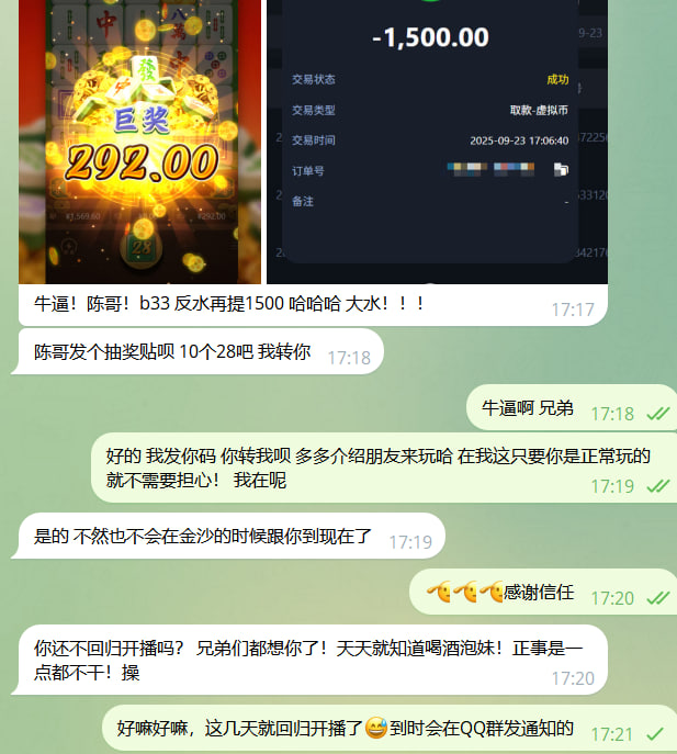 恭喜兄弟提了1.5万后反水再提1500!牛逼!认准小陈B33!