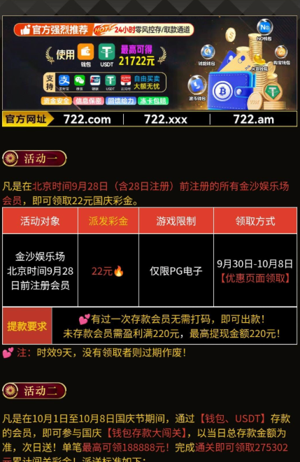 【金沙722】—✅—国庆彩金