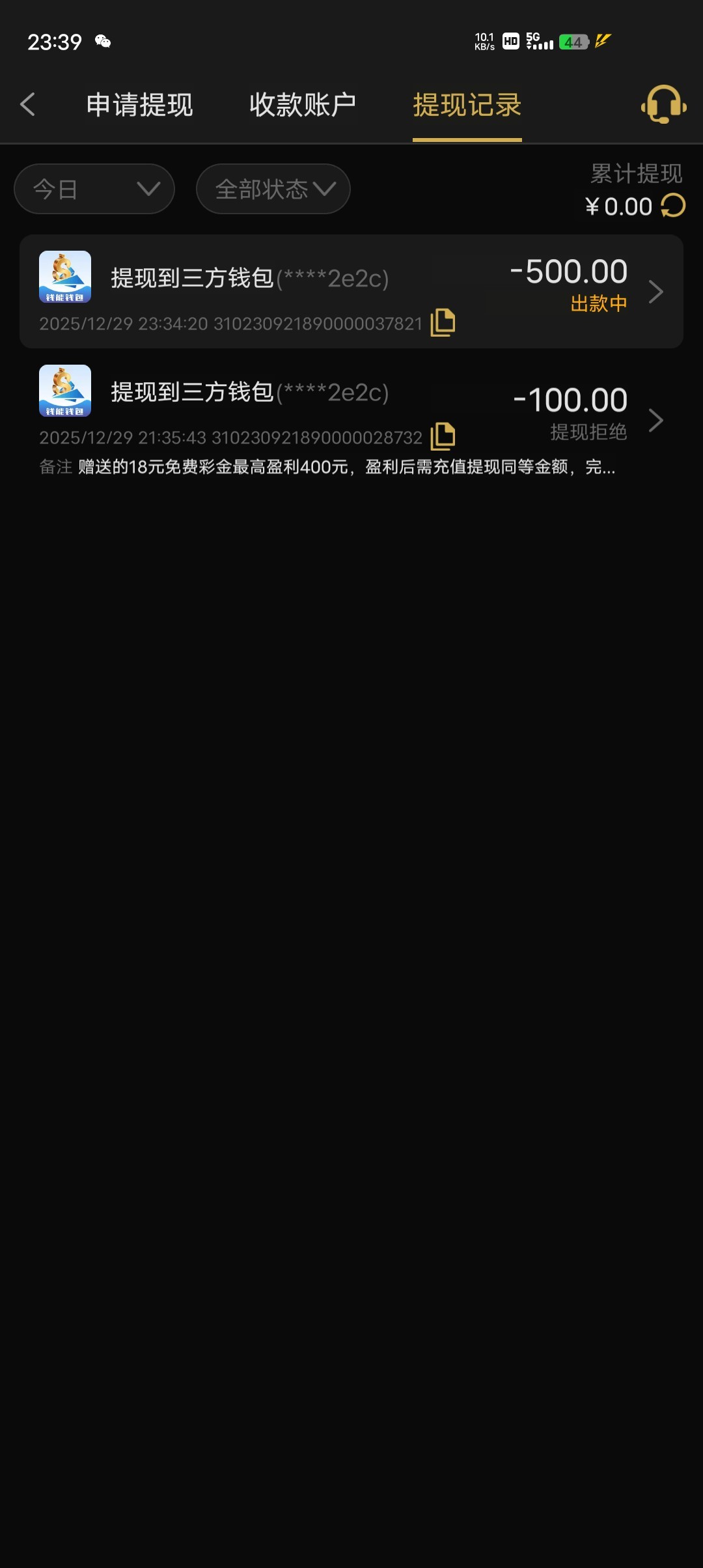 本来可以得吃600多的但要打流水提了500