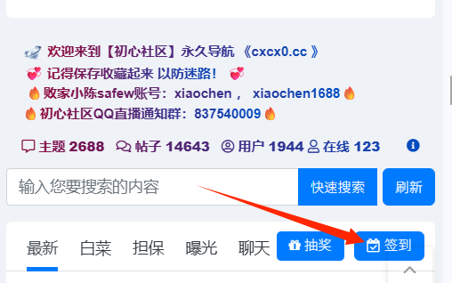 在初心社区登入您的账号后可以在首页看到抽奖和签到的