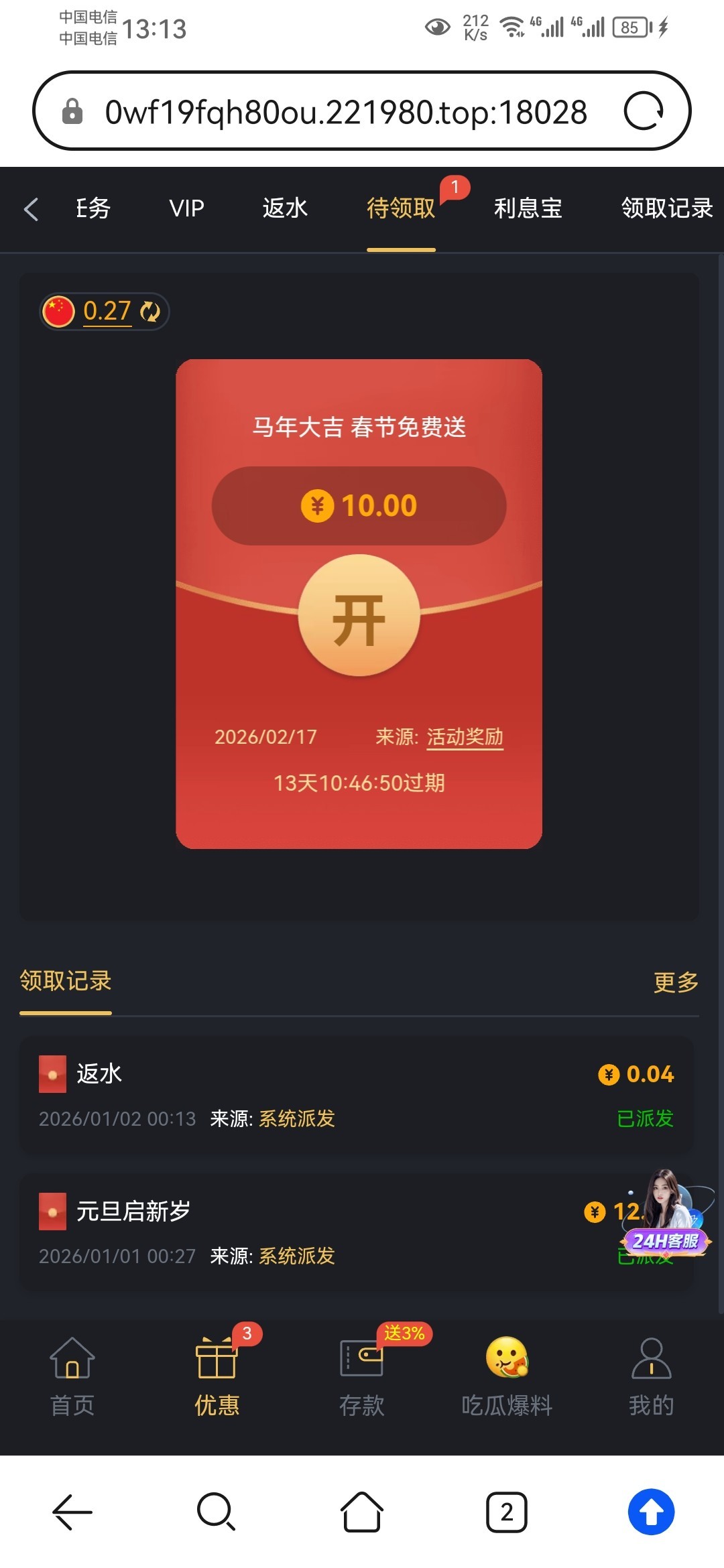 有号的记得登录上去领