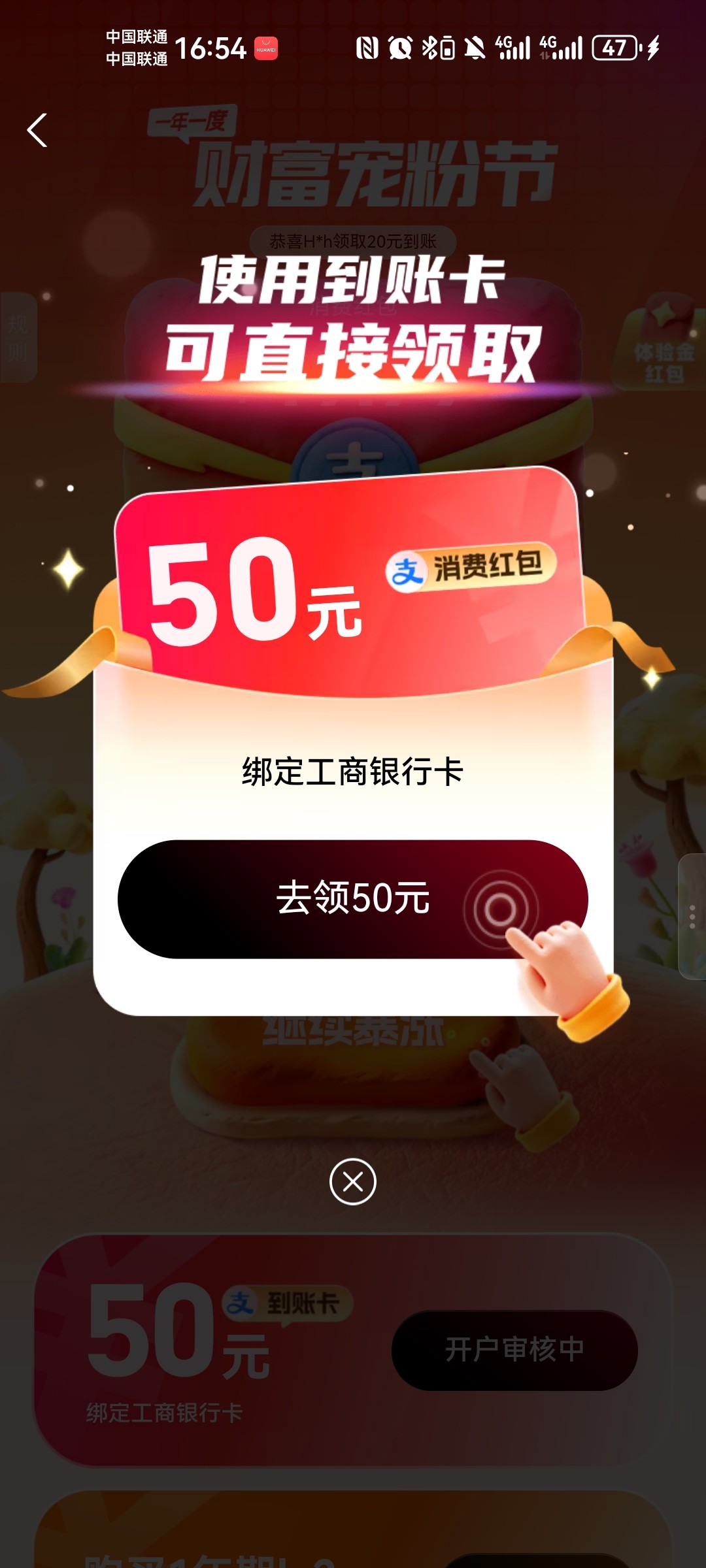 支付宝宠粉节开通国投证券,送50消费红包