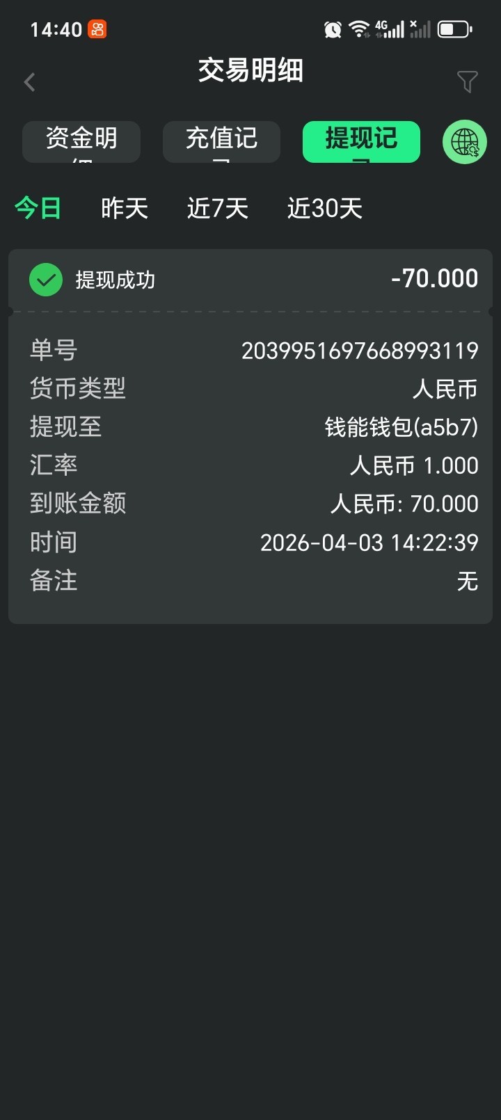 970.com 任务里送7 我下载注册过了好久没能领 然后充了十块过了一会能领了 要等挺久 然后还能抢红包红包有几块钱 我提了七十想看看能不能出的 已经到账了