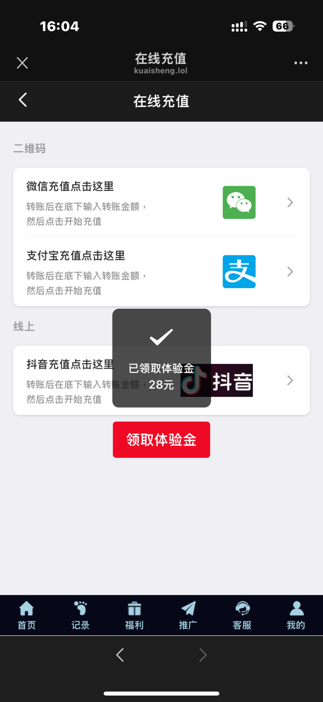 平台开启注册了,玩过的可以重新注册领取,微信扫码注册登录,充值里领取体验金秒送28!